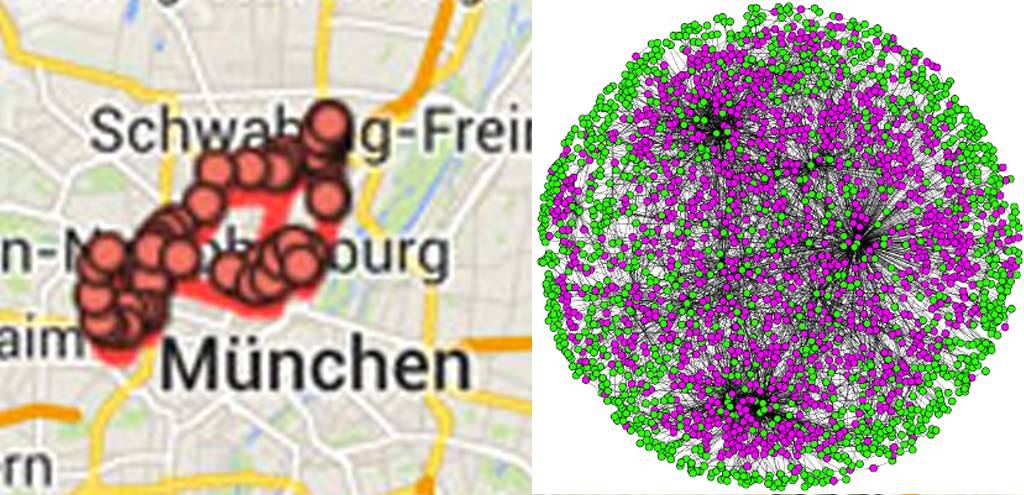 Separated at birth? Location histories as pins-on-a-map and good old network hairballs.