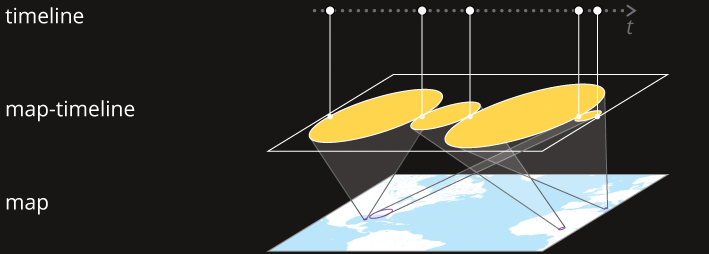 Temporal data is most commonly visualized on a timeline - using one spatial dimension as a stand-in for the time dimension. So, by splitting up the map into smaller segments and arranging them based on time we arrive at a map-timeline: