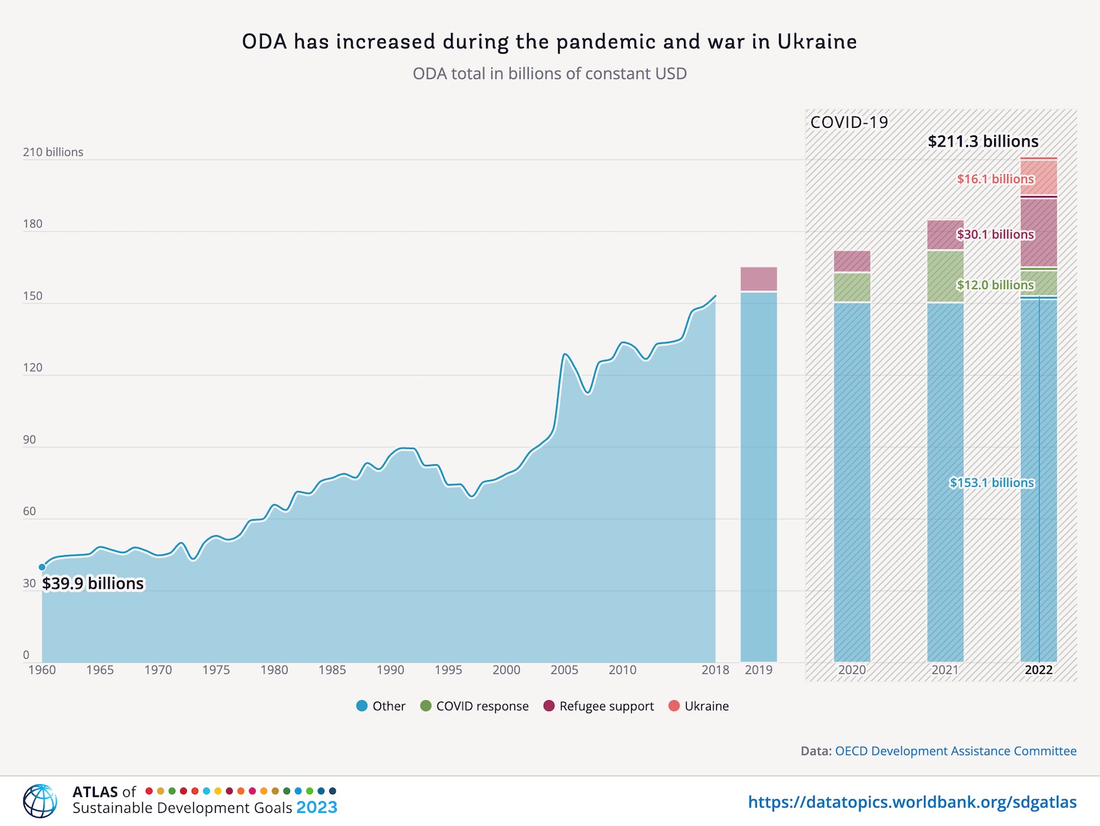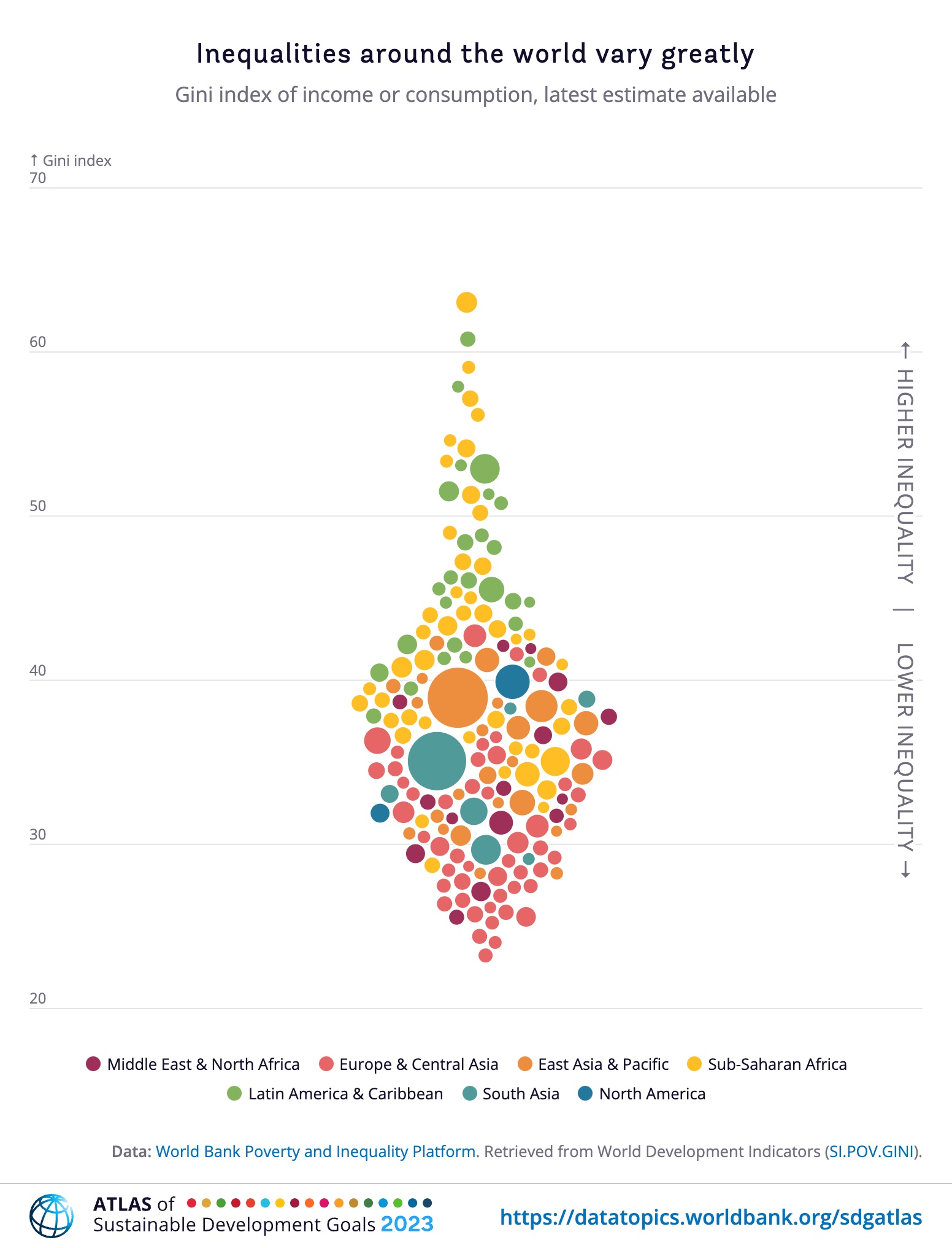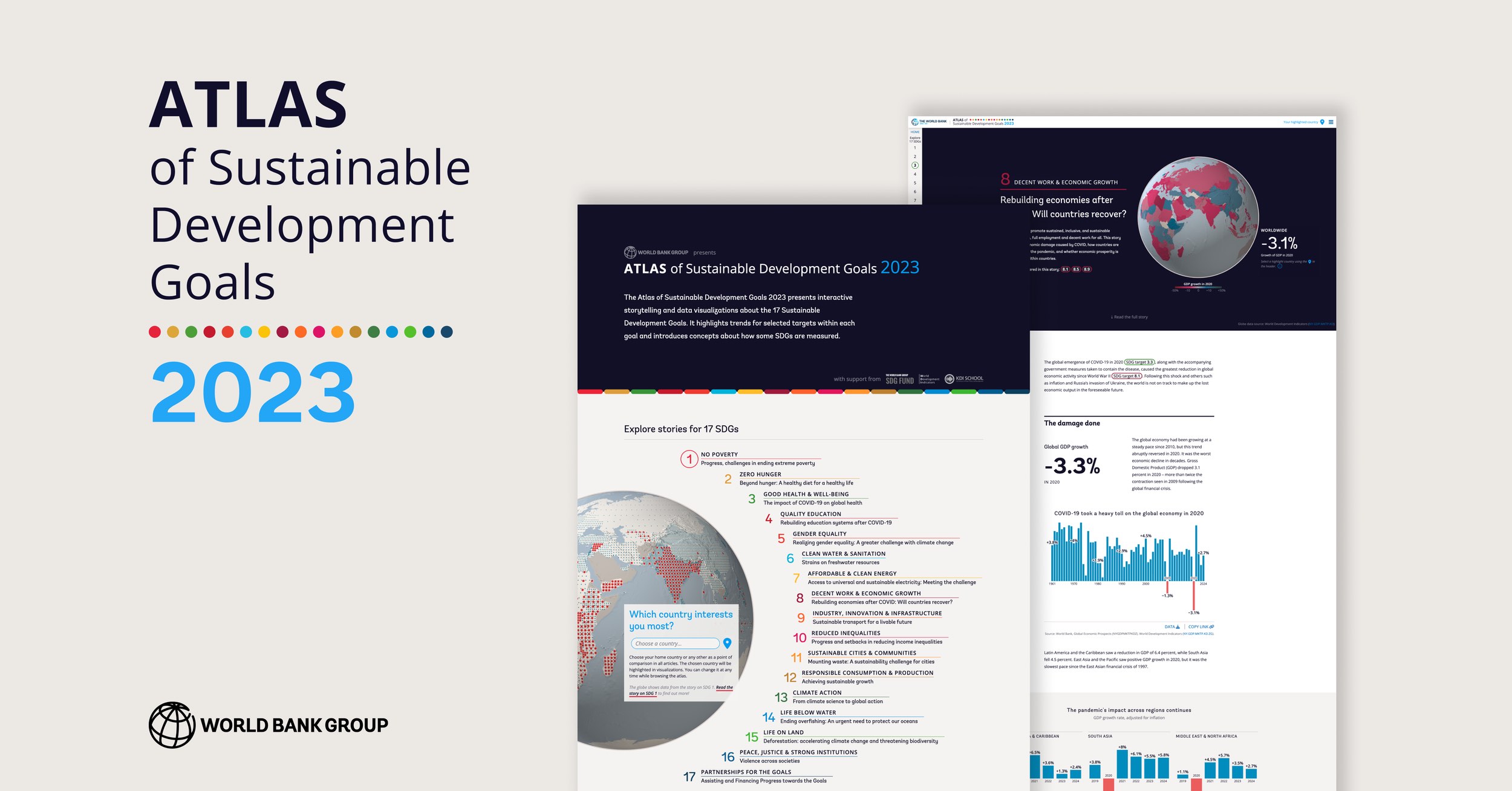 The Atlas, a project with the World Bank, dedicates one webpage to each of the goals, packed with interactive data visualizations to explore challenges as well as progress when it comes to these goals.